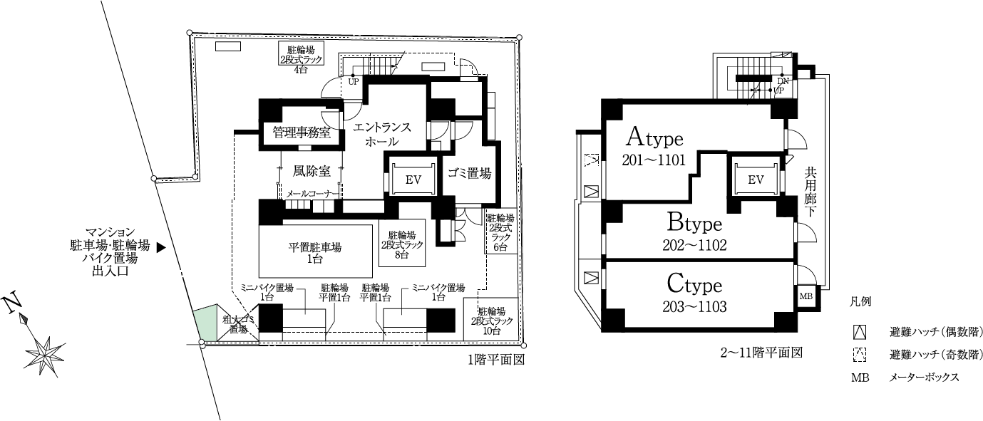 敷地内に設けられたゴミ置場は24時間いつでもゴミ出しが可能。帰宅が遅くなった夜でも安心です。