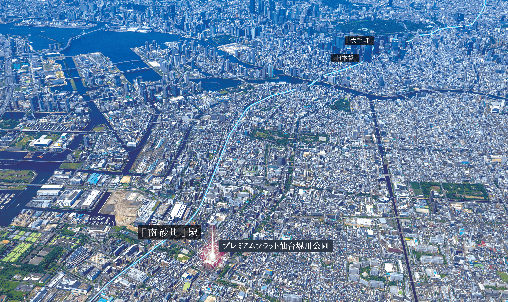 「東京」駅まで6km圏内とする「南砂町」駅まで徒歩7分。都心を身近に感じる駅を起点に、東京メトロ東西線をメイン路線とするアクセス網をフル活用。「日本橋」や「大手町」「高田馬場」といった主要駅にダイレクトでアプローチができます。さらに都心を彩るさまざまな路線にもスムーズに乗り換え。日頃の通勤・通学はもちろん、週末のプライベートなお出かけなど、シーンに応じて縦横無尽のアクセスが可能となります。